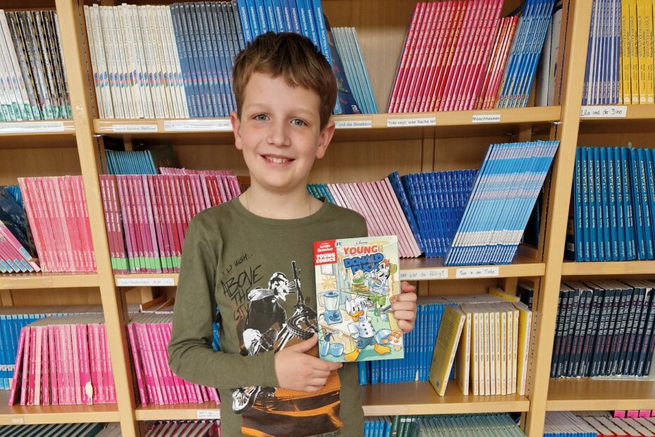 Oscar Martin aus der 1c-Klasse schätzte am besten und durfte sich über den Gewinn eines Taschenbuch-Comics freuen.