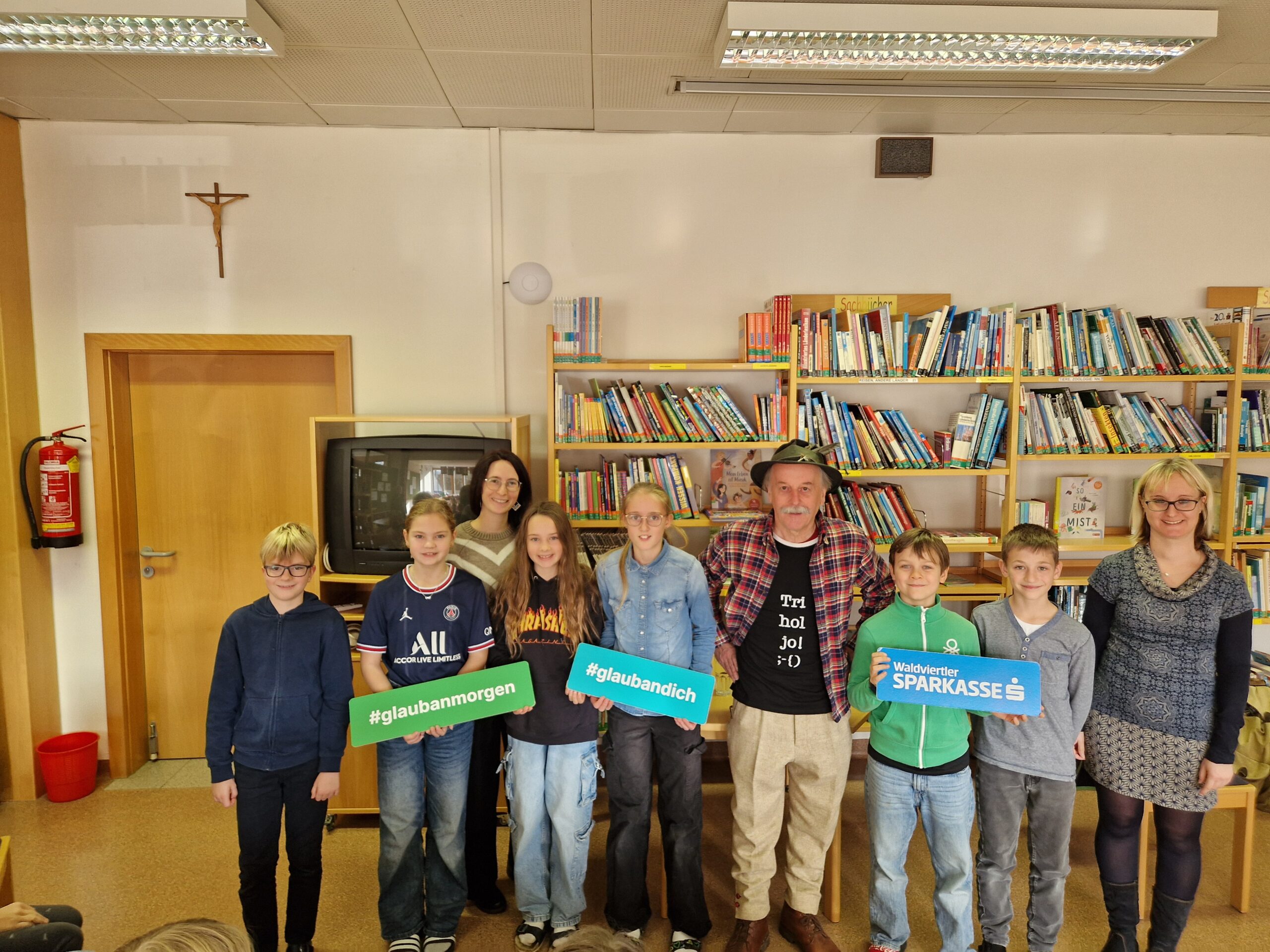 Der bekannte Märchenerzähler aus Grünau im Almtal, Helmut Wittmann, gestaltete für und mit den Schülerinnen und Schülern der 1. & 2. Klassen je eine Stunde, in denen er Volksmärchen aus NÖ und Sagen aus dem Walviertel zum Besten gab.