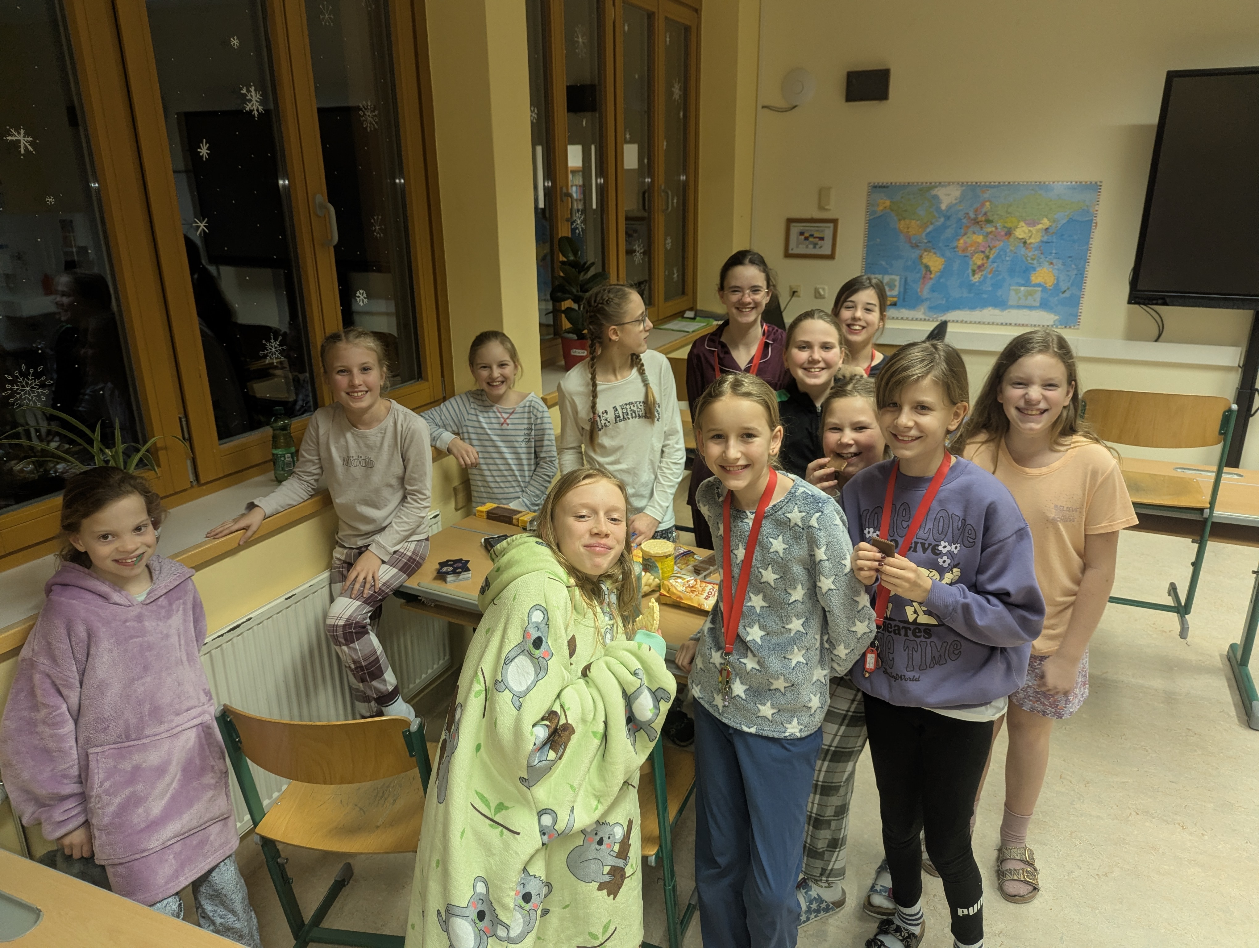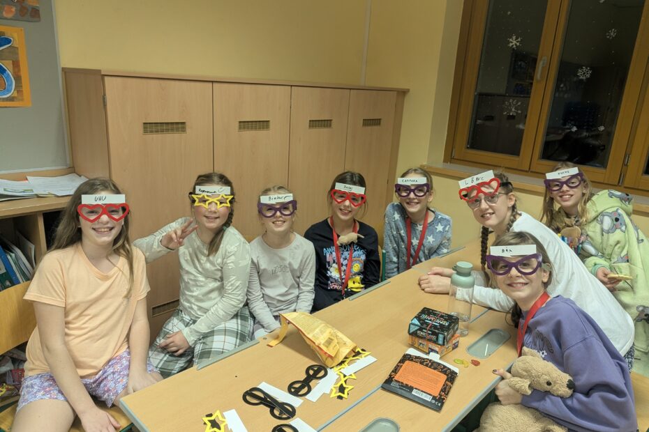 Anschließend herrschte helle Aufregung im Gebäude, denn eine knifflige Schnitzeljagd führte die Kinder durch die dunklen Gänge und Winkel des Schulhauses. Um frische Luft zu schnappen und die nächtliche Atmosphäre zu genießen, unternahm die Großgruppe danach mit Taschenlampen einen gemeinsamen Nachtspaziergang durch Pöggstall, bevor es zurück in die Schule ging. Dort war für jeden Geschmack etwas dabei: Während sich ein Teil der Schülerinnen und Schüler bei Teamspielen im Turnsaal richtig auspowerte, genossen andere die Zeit bei klassischen Gesellschaftsspielen oder entspannten bei einem gemeinsamen Filmabend.