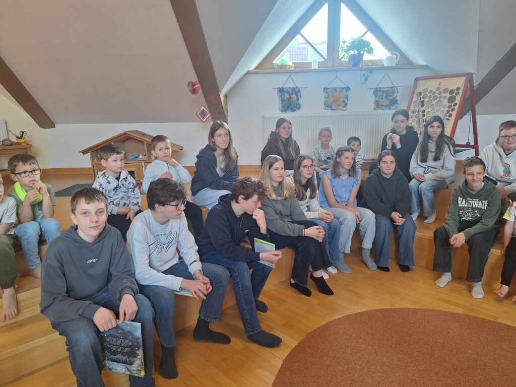 Die gemeinsame Zeit war für alle ein besonderes Erlebnis: Die Kindergartenkinder hörten aufmerksam zu, während die Jugendlichen ihre Lesefähigkeiten unter Beweis stellen konnten. Der Besuch stärkte nicht nur die Freude am Lesen, sondern auch das Miteinander zwischen Groß und Klein.
