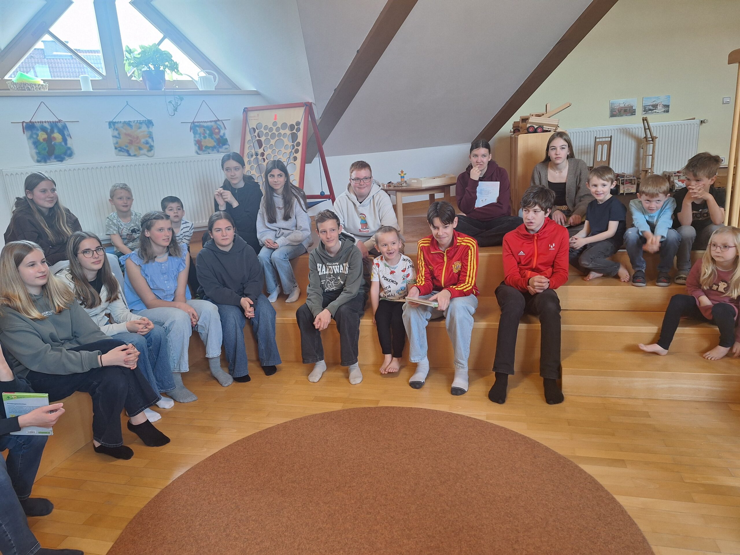 Die gemeinsame Zeit war für alle ein besonderes Erlebnis: Die Kindergartenkinder hörten aufmerksam zu, während die Jugendlichen ihre Lesefähigkeiten unter Beweis stellen konnten. Der Besuch stärkte nicht nur die Freude am Lesen, sondern auch das Miteinander zwischen Groß und Klein.